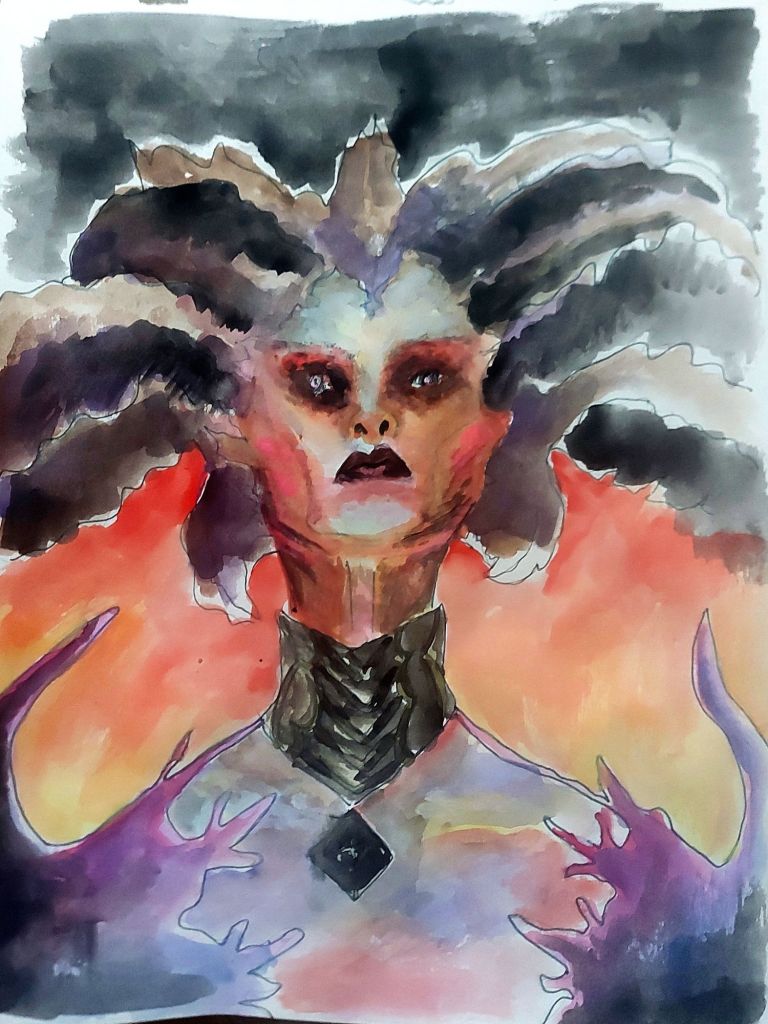 Inspired by pg.239 in The Book Of Elsewhere in the BRZRKR Universe by Keanu Reeves and China MiévilleRudimentary Color Exploration- Lilith from Diablo*Please note, some of these pieces have been stolen. If found, please let me know and a reward will be provided.*